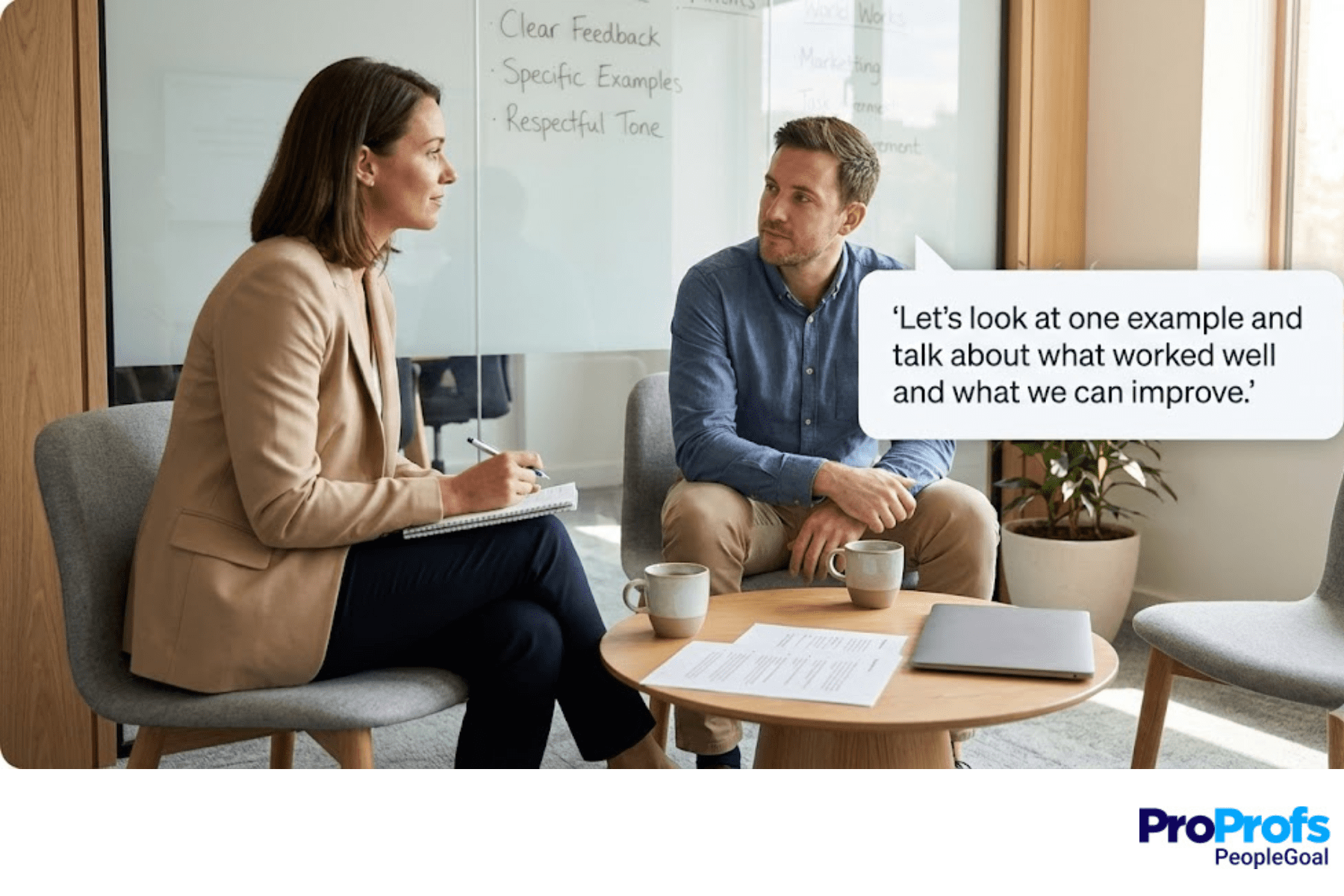 Example: A manager avoids phrases like “you never communicate” and instead says, “In three project updates this quarter, key decisions were not shared early enough.” The employee stays focused on the fix instead of reacting to the tone.